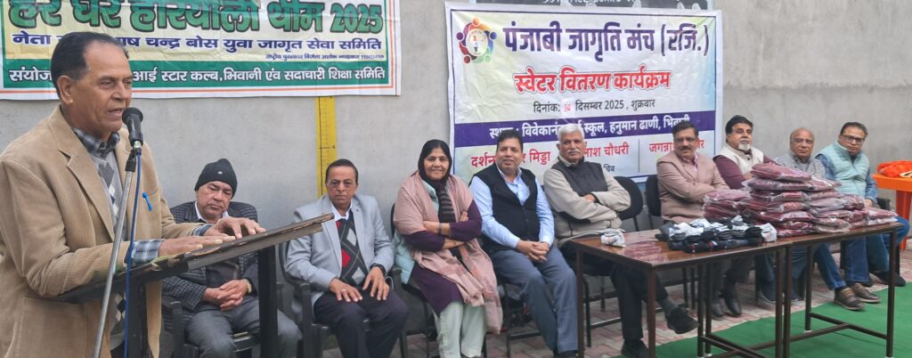 भिवानी, 30 दिसम्बर, अभीतक: सर्दी के मौसम में जरूरतमंद बच्चों को राहत पहुंचाने के उद्देश्य से पंजाबी जागृति मंच द्वारा हनुमान ढाणी स्थित विवेकानंद हाई स्कूल में 31 जरूरतमंद बच्चों को गर्म वस्त्र वितरित किए गए। इस सेवा कार्य में बच्चों के चेहरे पर खुशी और आत्मविश्वास देखने को मिला। कार्यक्रम के दौरान सामाजिक सरोकार और सेवा भावना का संदेश दिया गयज्ञं पंजाबी जागृति मंच के जिला प्रधान दर्शन कुमार मिड्ढा ने बताया कि मंच पिछले कई वर्षों से समाजसेवा के कार्यों में सक्रिय भूमिका निभा रहा है। मंच द्वारा हर वर्ष जरूरतमंद बच्चों को स्वेटर, जूते, जुराब, किताबें व अन्य आवश्यक सामग्री वितरित की जाती है, ताकि आर्थिक रूप से कमजोर बच्चे भी बिना किसी बाधा के शिक्षा ग्रहण कर सकें। उन्होंने कहा कि शिक्षा के साथ-साथ बच्चों का स्वस्थ रहना भी अत्यंत आवश्यक है और ठंड के मौसम में गर्म वस्त्र बच्चों को बीमारियों से बचाने में सहायक होते हैं। दर्शन कुमार मिठा ने बताया कि पंजाबी जागृति मंच द्वारा अनेक स्कूलों में गरीब बच्चों की फीस भरने में भी सहयोग किया जाता है। इसके अतिरिक्त जरूरतमंद परिवारों को समय-समय पर मुफ्त राशन उपलब्ध कराया जाता है। मंच की ओर से रिश्तों की फ्री सर्विस भी कृष्णा कॉलोनी स्थित कार्यालय में निरंतर चलाई जा रही है, जिसके माध्यम से समाज में आपसी सहयोग और मानवीय मूल्यों को बढ़ावा दिया जा रहा है। उन्होंने कहा कि परोपकार और सेवा से बड़ा कोई कार्य नहीं है। अधिक ठंड और कोहरे के इस मौसम में गर्म वस्त्र बच्चों को काफी राहत प्रदान करते हैं। मंच का उद्देश्य है कि जरूरतमंद बच्चे अच्छी शिक्षा प्राप्त कर समाज की मुख्यधारा में आगे बढ़ें और अपने भविष्य को उज्ज्वल बनाएं। इस अवसर पर पूर्व खेल अधिकारी एवं समाजसेवी दर्शन मिड्डा, उमाकांत शर्मा, मनोहर लाल सरदाना, जगन्नाथ गंभीर, ओमप्रकाश दुरेजा, ओमप्रकाश सुखीजा, घनश्याम सनेजा, कृष्ण कुमार हंस, राधाकृष्ण चावला, भारत भूषण मेहता, धर्मपाल बजाज, विवेकानंद हाई स्कूल की निदेशक सावित्री यादव, अवशेष कुमार, मास्टर दयानंद, सतीश कुमार, उषा, बबीता बरगूजर, युवा पुरस्कार विजेता अशोक कुमार भारद्वाज तथा पूनम सैनी सहित अनेक गणमान्य व्यक्ति उपस्थित रहे।