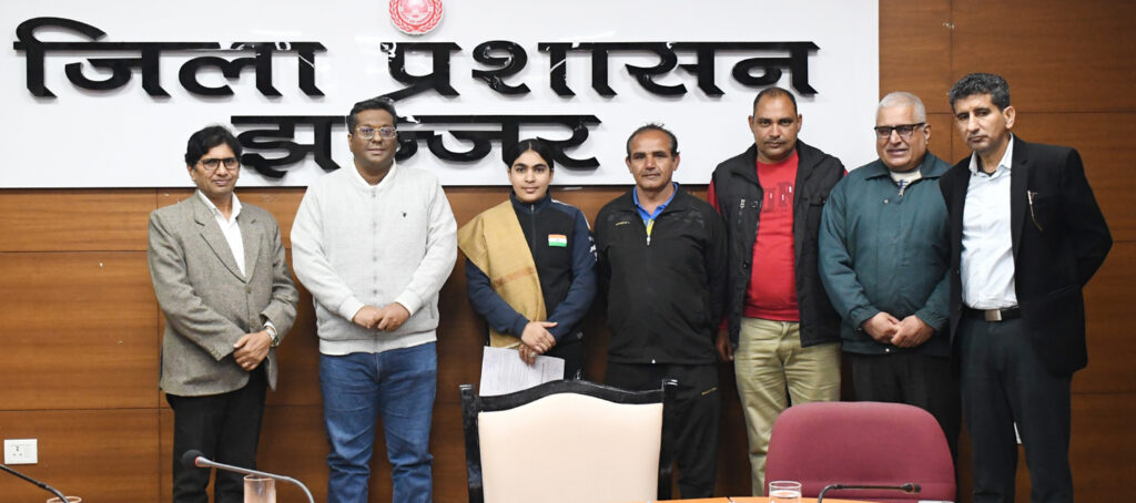 झज्जर, 30 दिसम्बर, अभीतक: जिला के गांव सासरौली की शूटिंग की विश्व विजेता खिलाड़ी सुरुचि फोगाट ने अपने पिता हवलदार इंद्र सिंह फोगाट और अपने ताऊ सतीश पहलवान के साथ डीसी स्वप्निल रविंद्र पाटिल से शिष्टाचार भेंट की। डीसी स्वप्निल रविंद्र पाटिल ने दोहा में आयोजित आईएसएसएफ (इंटरनेशनल शूटिंग स्पोर्ट्स फेडरेशन) शूटिंग विश्वकप फाइनल में स्वर्ण पदक जीतने पर बधाई देते हुए उनके उज्जवल भविष्य की कामना की। उल्लेखनीय है शूटिंग में विश्व रैंकिंग की टॉप खिलाड़ी सुरुचि फोगाट ने वर्ष 2025 में विश्व स्तर पर आयोजित शूटिंग प्रतियोगिताओं में पांच गोल्ड मेडल जीते हैं। पिछले वर्ष राष्ट्रीय शूटिंग चैंपियनशिप में सात गोल्ड मेडल जीते थे। इसी माह दोहा में आयोजित आईएसएसएफ (इंटरनेशनल शूटिंग स्पोर्ट्स फेडरेशन) शूटिंग विश्वकप फाइनल में स्वर्ण पदक जीतकर नया वर्ल्ड रिकॉर्ड स्थापित किया है। सुरूचि ने बताया कि फिलहाल, वह आगामी फरवरी में दिल्ली में आयोजित हो रही एशियन चैंपियनशिप में भाग लेने की तैयारी कर रही है। उन्होंने डीसी को बताया कि वर्ष 2019 से शूटिंग खेल प्रतियोगिताओं में भाग लेना शुरू किया था। डीसी ने कहा कि सुरुचि फोगाट ने राष्ट्रीय और अंतरराष्ट्रीय स्तर पर पदक जीतकर अपने परिवार, गांव, जिला, प्रदेश और देश का नाम विश्व खेल पटल पर रोशन किया है। हम सभी कामना करते हैं कि भविष्य में ओलंपिक सहित अन्य खेल स्पर्धाओं में और मेडल जीतकर सुरुचि जिले का नाम रोशन करेगी। डीसी ने सुरुचि के परिवार और कोच को भी बधाई देते हुए कहा कि प्रशासन होनहार खिलाड़ी को हर संभव मदद करेगा। इस दौरान एडीसी जगनिवास, डीआरओ मनबीर सांगवान और डीआईपीआरओ सतीश कुमार ने भी विश्व विजेता खिलाड़ी को बधाई और शुभकामनाएं दी।