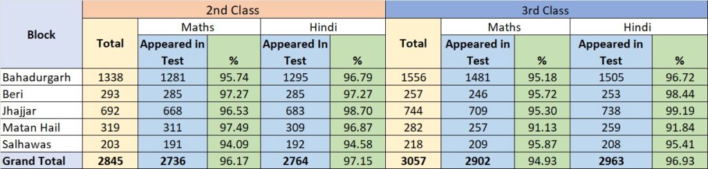 झज्जर जिले के सभी 291 प्राथमिक विद्यालयों में कक्षा दूसरी-तीसरी की सेंसस आकलन सफलतापूर्वक संपन्न