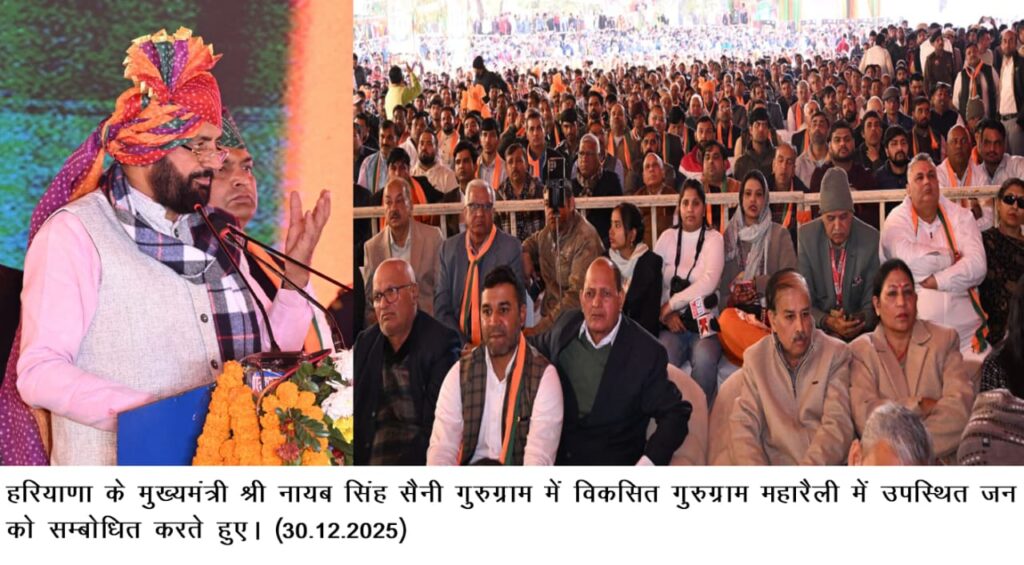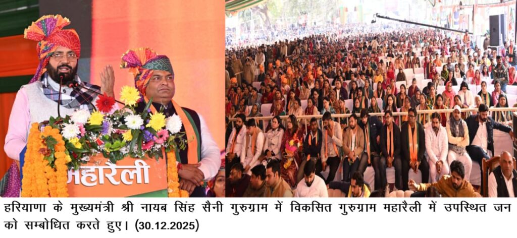 गुरुग्राम, 30 दिसम्बर, अभीतक: हरियाणा के मुख्यमंत्री श्री नायब सिंह सैनी ने कहा कि आज गुरुग्राम केवल हरियाणा ही नहीं, बल्कि भारत की आर्थिक प्रगति का इंजन बन चुका है। उन्होंने कहा कि हरियाणा आज विकास के पथ पर तेजी से आगे बढ़ रहा है, जो केंद्र में प्रधानमंत्री श्री नरेंद्र मोदी और प्रदेश में राज्य सरकार की ‘डबल इंजन’ सरकार की मजबूत नेतृत्व क्षमता का परिणाम है। मुख्यमंत्री ने कहा कि सरकार का लक्ष्य पूरे हरियाणा का संतुलित और समावेशी विकास सुनिश्चित करना है, चाहे वह शहर हो या गांव, और इसी संकल्प के साथ सरकार पूरी प्रतिबद्धता से आगे बढ़ रही है। मुख्यमंत्री मंगलवार को गुरुग्राम के विधायक मुकेश शर्मा के जन्मदिन के उपलक्ष्य में विधायक द्वारा आयोजित विकसित गुरुग्राम महारैली को संबोधित कर रहे थे। मुख्यमंत्री ने इस अवसर पर विधायक मुकेश शर्मा को जन्मदिन तथा उपस्थिति जनसमूह को नववर्ष की शुभकामनाएं दी। मुख्यमंत्री ने कहा कि सरकार जो वायदे करती है, उन्हें धरातल पर उतारती है। उन्होंने कहा कि विधानसभा चुनावों के संकल्प-पत्र में किए गए 217 वादों में से 54 वादे मात्र एक वर्ष में पूरे कर दिए गए हैं, जबकि 163 वादों पर कार्य प्रगति पर है। यह सरकार जनता की अपनी सरकार है।सरकार का संकल्प ‘सबका साथ, सबका विकास, सबका विश्वास और सबका प्रयास’ है। उन्होंने स्पष्ट किया कि क्षेत्रवाद और जातिवाद की राजनीति को पीछे छोड़ते हुए सरकार ‘हरियाणा एक, हरियाणवी एक’ के मंत्र पर पूरी प्रतिबद्धता के साथ काम कर रही है। उन्होंने विश्वास दिलाया कि गुरुग्राम के समग्र विकास में सरकार कोई कसर नहीं छोड़ेगी और इसे देश का सबसे विकसित नगर बनाने की दिशा में निरंतर एवं प्रभावी कदम उठाए जाएंगे।