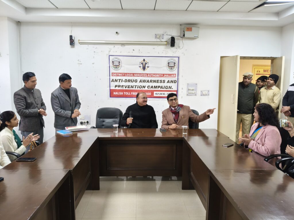 झज्जर, 06 जनवरी, अभीतक: मंगलवार को जिला विधिक सेवा प्राधिकरण झज्जर के एडीआर सैंटर में एंट्री ड्रग अवेयरनेस एंड प्रीवेंटेशन अभियान के दौरान उल्लेखनीय कार्य करने वाले विभिन्न विभागों के अधिकारियों व कर्मचारियों को सम्मानित किया गया। विदित रहे कि जिला विधिक सेवा प्राधिकरण झज्जर द्वारा 6 दिसंबर 2025 से 6 जनवरी 2026 तक नशीली दवाओं के खिलाफ जागरूकता एवं रोकथाम हेतु एक अभियान चलाया गया। 31 दिन तक चले इस अभियान ने 34 से ज्यादा जगहों पर जागरूकता कार्यक्रम किए। यह कार्यक्रम स्कूलों, काॅलेजो। तथा सार्वजनिक स्थानों पर आयोजित किए गए। इन कार्यक्रमों में अलग अलग तरीकों से लोगों को नशा, नशीली दवाओं से होने वाले दुष्प्रभावों को लेकर जागरूक किया गया। इसमें विद्यार्थियों द्वारा रैली, डिबेट डिक्मेलेशन, नुक्कड़ नाटक, हैल्थ कैम्प तथा काउंसलिंग के द्वारा लोगों को जागरूक किया गया। इस अभियान को सफलतापूर्वक चलाने में शिक्षा विभाग, पुलिस विभाग, जगन्नाथ यूनिवर्सिटी,वैश्य कालेज बहादुरगढ़, एम डी डी आफ इंडिया ने जी ओ तथा साध एन जी ओ का सहयोग रहा। इस अभियान के सफलता पूर्वक संपन्न होने पर आज के कार्यक्रम के मुख्य अतिथि माननीय जिला एवं सत्र न्यायाधीश श्री अजय तेवतिया द्वारा अधिकारियों व कर्मचारियों को प्रशस्ति पत्र देकर सम्मानित किया गया। इस दौरान विशिष्ट अतिथि के रूप में मुख्य न्यायिक दंडाधिकारी एवं सचिव श्री विशाल रहे। कार्यक्रम का संचालन एम डी डी आफ इंडिया संस्था से मनोज कुमार द्वारा किया गया। अपने संबोधन में उन्होंने मुख्य अतिथि जिला एवं सत्र न्यायाधीश श्री अजय तेवतिया, विशिष्ट अतिथि मुख्य न्यायिक दंडाधिकारी एवं सचिव श्री विशाल जी का स्वागत करते हुए आज के कार्यक्रम की महत्वत्ता के बारे में विस्तार से बताया। विशिष्ट अतिथि मुख्य न्यायिक दंडाधिकारी एवं सचिव श्री विशाल जी ने कहा कि नशीली दवाओं के खिलाफ जागरूकता एवं उनकी रोकथाम आज के समय की आवश्यकता है। नशीली दवाओं के दुष्परिणामों को आम जन तक पहुंचाना बहुत जरूरी है तभी हमारा जिला नशा मुक्त बनेगा। इस दौरान उन्होंने सभी विभागों का इस अभियान में उल्लेखनीय कार्य करने पर धन्यवाद किया। मुख्य अतिथि जिला एवं सत्र न्यायाधीश श्री अजय तेवतिया ने कहा कि सभी विभागों की एकजुटता से ही विभिन्न सामाजिक बुराइयों पर रोक लग सकती है इसलिए सभी विभागों का एकजुटता से कार्य करना जरूरी है। आज के कार्यक्रम में जिला शिक्षा अधिकारी श्री रतिन्दर, पुलिस विभाग, स्वास्थ्य विभाग वैश्य कालेज बहादुरगढ़, जगन्नाथ यूनिवर्सिटी के सभी वालिंटियर, सभी पैरा लीगल वालिंटियर, साध एनजीओ छोटूराम, पैरा लीगल वालिंटियर कर्मजीत छिल्लर, एमडीडीआफ इंडिया संस्था से जिला समन्वयक मनोज कुमार, स