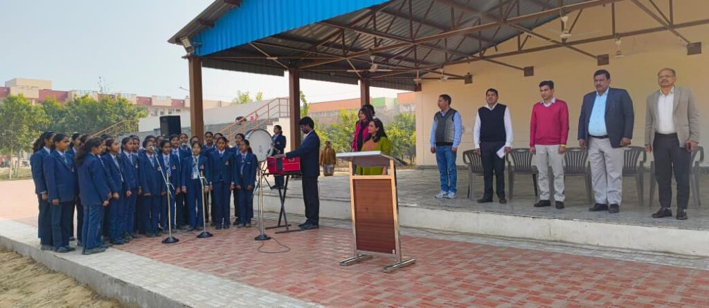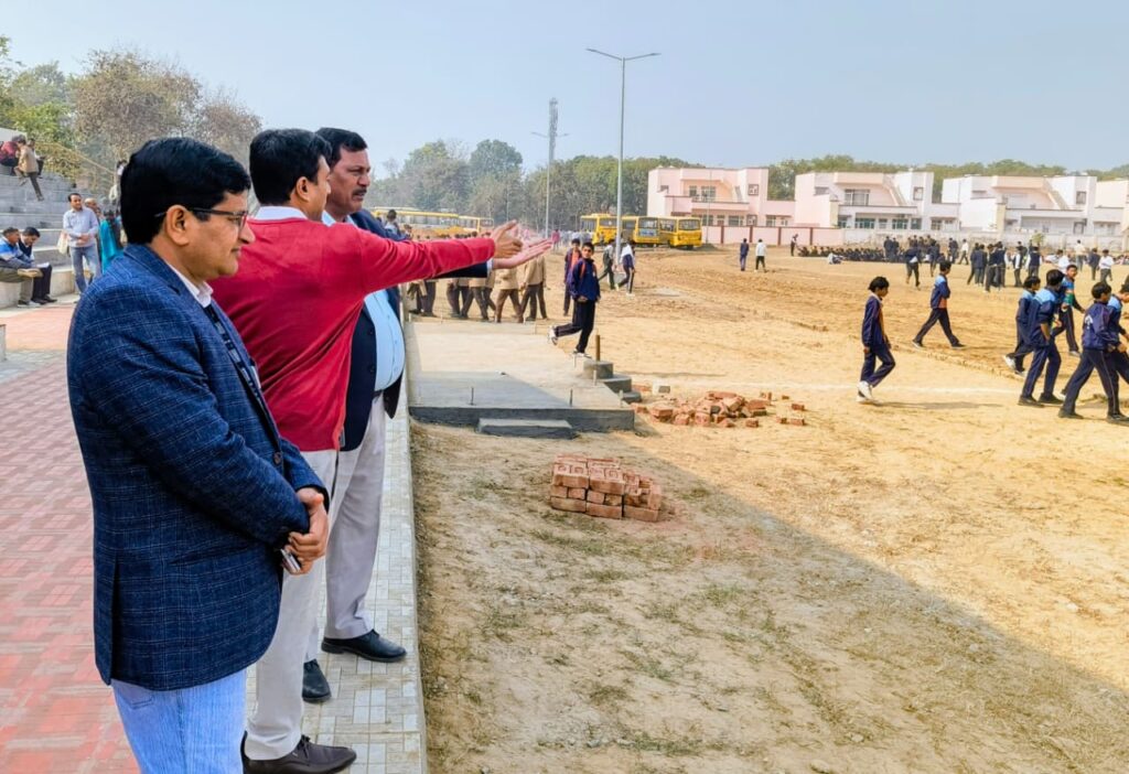 गणतंत्र दिवस समारोह की तैयारियों में जुटे प्रतिभागी विद्यार्थी व इंचार्ज