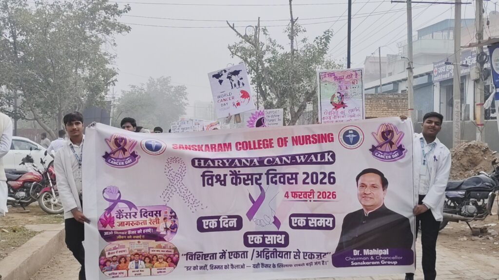 झज्जर, 04 फरवरी, अभीतक: खातीवास स्थित संस्कारम कॉलेज ऑफ नर्सिंग द्वारा विश्व कैंसर दिवस के अवसर पर कैंसर जैसी गंभीर बीमारी के प्रति आमजन को जागरूक करने के उद्देश्य से एक भव्य जन-जागरूकता कार्यक्रम का आयोजन किया गया। इस अवसर पर कॉलेज की ओर से एक जागरूकता रैली निकाली गई, जो झज्जर के भगत सिंह चैक से प्रारंभ होकर सिविल अस्पताल झज्जर तक पहुंची। इस जागरूकता रैली में कॉलेज के प्रधानाचार्य, समस्त शिक्षण एवं गैर-शिक्षण स्टाफ सदस्य तथा बी.एससी. नर्सिंग एवं जी.एन.एम. पाठ्यक्रम के छात्र-छात्राओं ने बढ़-चढ़कर भाग लिया। रैली के दौरान छात्रों ने हाथों में जागरूकता पोस्टर और बैनर लेकर कैंसर से संबंधित विभिन्न संदेश दिए। छात्रों द्वारा लगाए गए नारों के माध्यम से लोगों को यह बताया गया कि समय पर जांच, सही जीवनशैली और जागरूकता से कैंसर जैसी बीमारी से बचाव संभव है। रैली के दौरान छात्रों ने आमजन को कैंसर के प्रारंभिक लक्षणों, कारणों, रोकथाम के उपायों एवं नियमित स्वास्थ्य जांच के महत्व के बारे में जानकारी दी। छात्रों ने धूम्रपान, तंबाकू सेवन और अस्वस्थ जीवनशैली से होने वाले दुष्प्रभावों के बारे में भी लोगों को जागरूक किया। राह चलते लोगों ने भी इस रैली में रुचि दिखाई और जागरूकता संदेशों को ध्यानपूर्वक सुना। कार्यक्रम के अंतर्गत कॉलेज के बी.एससी. नर्सिंग प्रथम वर्ष एवं जी.एन.एम. के छात्रों द्वारा एक प्रभावशाली नुक्कड़ नाटक का मंचन किया गया। नाटक के माध्यम से यह संदेश दिया गया कि कैंसर कोई लाइलाज बीमारी नहीं है, बल्कि समय पर पहचान और सही उपचार से इसे हराया जा सकता है। नाटक ने लोगों को भावनात्मक रूप से झकझोरते हुए स्वस्थ जीवन अपनाने की प्रेरणा दी। इसके अतिरिक्त छात्रा मानसी द्वारा प्रस्तुत की गई भावनात्मक कविता ने उपस्थित जनसमूह को गहराई से प्रभावित किया। कविता के माध्यम से कैंसर पीड़ितों के संघर्ष, साहस और समाज की जिम्मेदारी को प्रभावी ढंग से प्रस्तुत किया गया, जिसे लोगों ने खूब सराहा। इस जागरूकता अभियान में सिविल अस्पताल झज्जर के स्टाफ सदस्यों ने भी सक्रिय सहभागिता की। उन्होंने कार्यक्रम की प्रशंसा करते हुए कहा कि ऐसे जागरूकता कार्यक्रम समाज में स्वास्थ्य के प्रति चेतना फैलाने में महत्वपूर्ण भूमिका निभाते हैं। उन्होंने नर्सिंग छात्रों के प्रयासों की सराहना करते हुए भविष्य में भी ऐसे कार्यक्रम आयोजित करने की आवश्यकता पर जोर दिया। कार्यक्रम के समापन अवसर पर सभी शिक्षकों, छात्रों एवं उपस्थित लोगों ने कैंसर के प्रति जागरूकता फैलाने, स्वस्थ जीवनशैली अपनाने तथा समाज को रोगमुक्त बनाने के लिए निरंतर प्रयास करने का संकल्प लिया। कॉलेज प्रशासन ने भी यह संदेश दिया कि भविष्य में इस प्रकार क