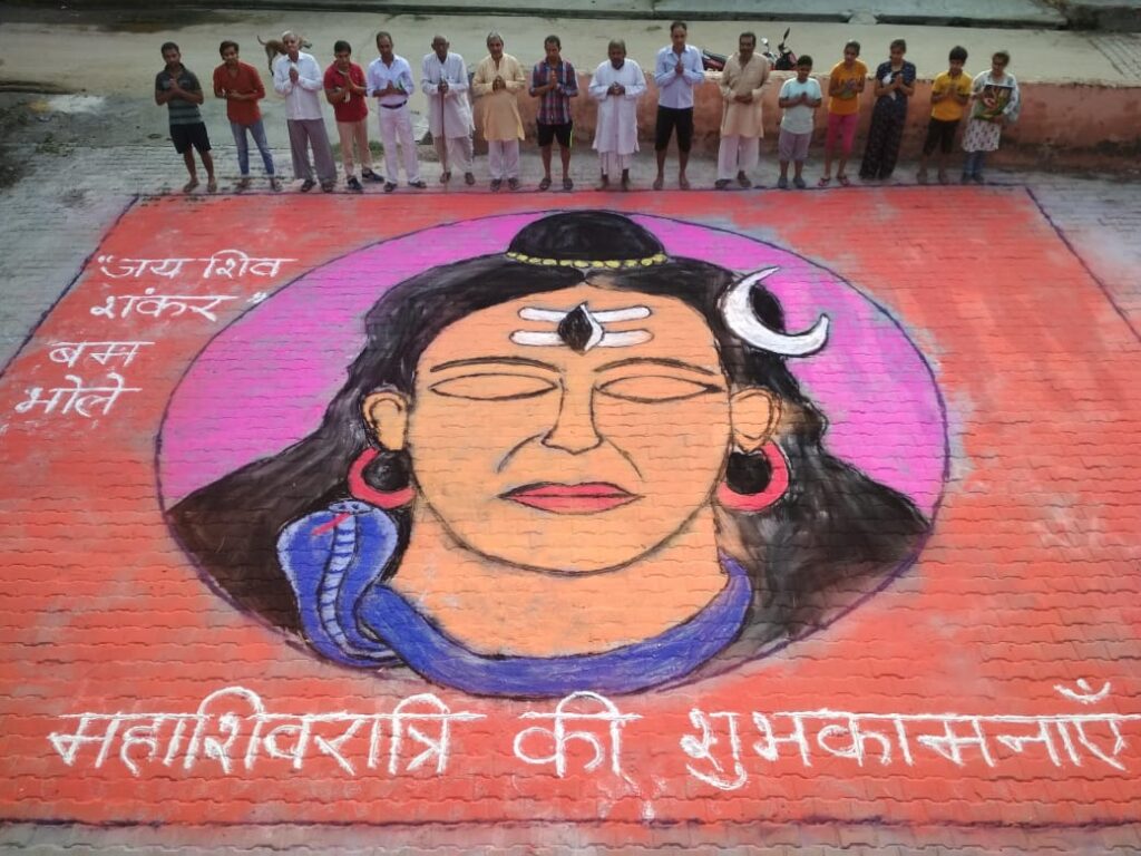महाशिवरात्रि की पूर्व संध्या पर भगवान शिव शंकर का रंगोली रेखाचित्र बनकर भगवान शिव को किया नमन