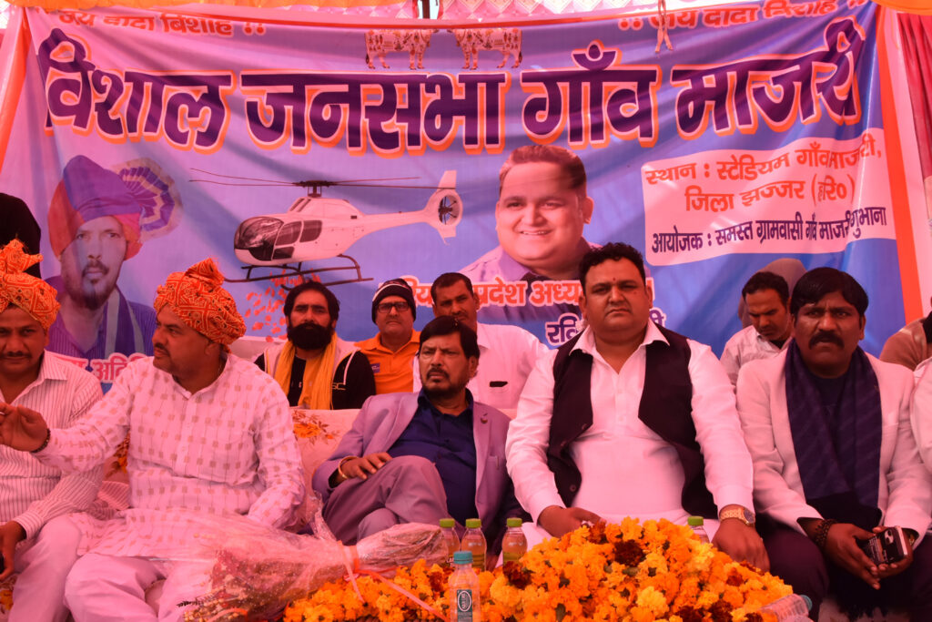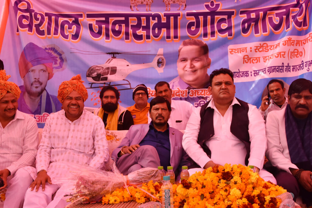 माजरी गांव में आयोजित कार्यक्रम में जनसभा को संबोधित करते केंद्रीय सामाजिक न्याय एवं सशक्तिकरण राज्य मंत्री व रिपब्लिकन पार्टी ऑफ इंडिया के राष्ट्रीय अध्यक्ष श्री रामदास अठावले।