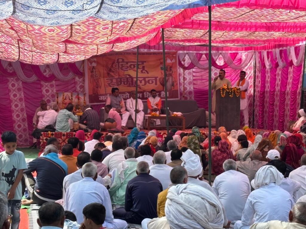 धारूहेड़ा की दयानंद बस्ती (कापड़ीवास) में आयोजित विराट हिंदू सम्मेलन में गूँजा राष्ट्रभक्ति का स्वर