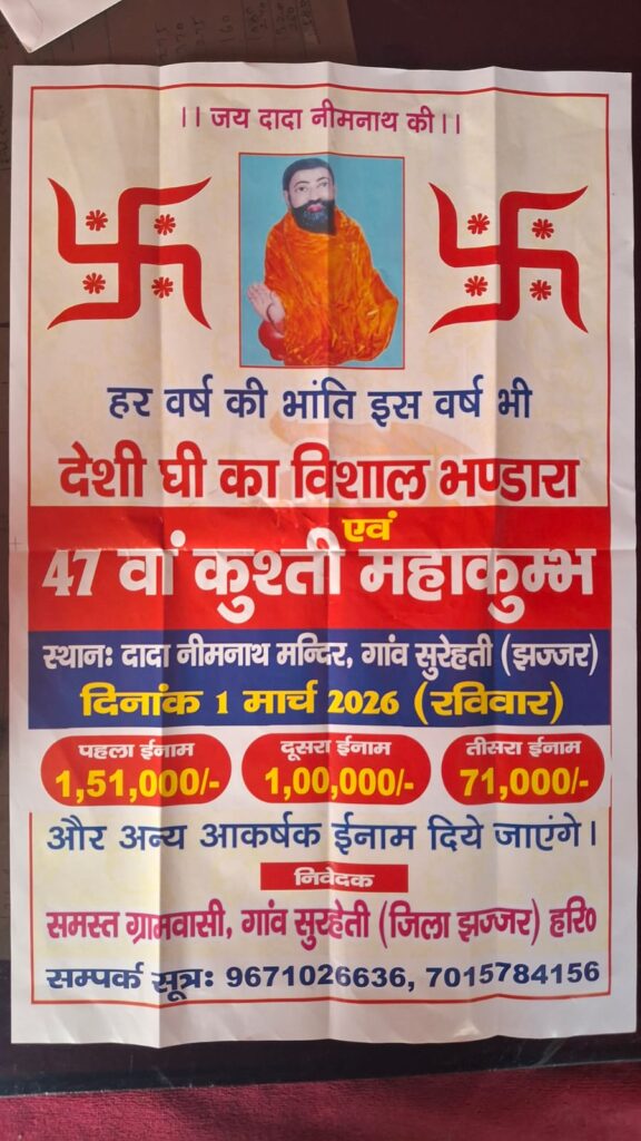 सुरेहती गांव में 1 मार्च 2026 को होने वाले वार्षिकोत्सव में आप सादर आमंत्रित हैं। कृपया इस 47वें कुश्ती महाकुंभ में पहुंच कर कार्यक्रम की शोभा बढ़ाएं।