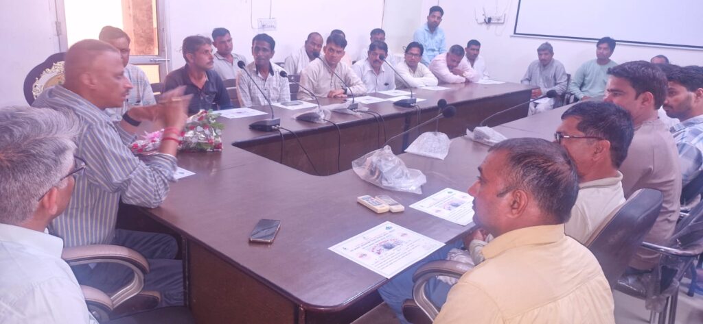 उपस्थित प्लम्बर व पम्प ऑपरेटर को सम्बोधित करते एस.ई अमित श्योकन्द