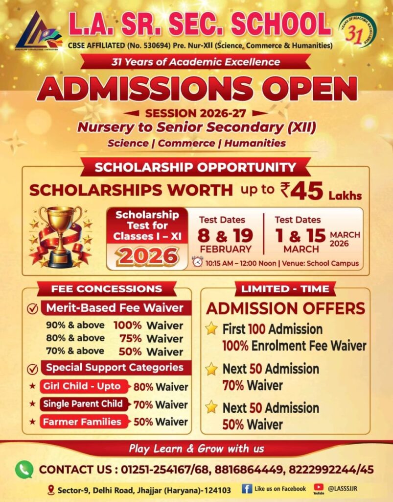 झज्जर, 27 मार्च, अभीतक: एल. ए. सी. सै. स्कूल, दिल्ली-बहादुरगढ़ रोड़, सेक्टर-9, झज्जर में वार्षिक पुरस्कार वितरण समारोह आयोजित किया गया। कक्षा प्रि-नर्सरी से ग्याहरवीं कक्षा के बच्चों व उनके अभिभावकों ने इस समारोह में भाग लिया। कार्यक्रम में मुख्यअथिति के तौर पर प्राइवेट स्कूल एसोसिएशन के प्रेजिडेंट व गोल्ड़न वैली ग्रुप ऑफ स्कूल के डारेक्टर जितेंद्र लाठर उपस्थित रहे। सबसे पहले ललित कलाओं की देवी माँ सरस्वती के समक्ष मुख्य अथिति जितेंद्र लाठर, एल. ए. स्कूल संस्था संचालक जगपाल गुलिया, जयदेव दहिया, अनिता गुलिया, नीलम दहिया, योजित गुलिया, भविष्य दहिया ने धूप-दीप प्रज्वलित कर कार्यक्रम का शुभारंभ किया। कक्षा छठी की छात्राओं ने माँ सरस्वती वंदना पेश कर वातावरण को भक्तिमय बना दिया। नन्हें-मुन्ने बच्चों ने मिलकर सांस्कृतिक कार्यक्रम पेश किया। कक्षा सातवीं की छात्रों ने नारी शक्ति शीर्षक पर एक संगीतमय प्रस्तुति पर सब को मंत्रमुग्ध कर दिया। मुख्यअतिथि ने अपने सम्बोधन में बच्चों को डिजिटल प्लेटफार्म व फोन से दूर रखने का आग्रह किया। उन्होंने एल. ए. स्कूल को शिक्षा में एक अग्रणीय स्कूल बताया। संगीत प्राध्यापक जितेंद्र ने अपनी कोरियोग्राफी से सभी को प्रभावित किया। आर्ट एंड क्राफ्ट अध्यपिका रितिका के कार्य कि सभी ने प्रशंसा की। स्कूल प्राचार्या निधि कादयान ने स्कूल वार्षिक रिपोर्ट पेश कर सभो अभिभावकों को स्कूल उपलब्धियों से अवगत कराया। साथ ही उन्होनें पॉजिशन होल्डरों को गिफ्ट प्रदान कर सम्मानित किया। इसके बाद सभी बच्चों को उनके परिणामों के आधार पर सम्मानित किया गया। मंच संचालन का कार्य भूगोल प्राध्यापक मुकेश शर्मा व अध्यापिका प्रियंका यादव ने किया। अंत में सभी अभिभावकों को बच्चों का रिपोर्टकार्ड भेंट किया गया। संस्था प्रबन्धक के.एम.डागर ने सभी अभिभावकों का स्कूल प्रांगण में पहुंचने पर ह्रदय से आभार प्रकट किया। समस्त कार्यक्रम की रुपरेखा एचऑडी रविंद्र लोहचब, पिंकी अहलावत, पुष्पा यादव व सपना अहलावत के नेतृत्व में रहा। इस अवसर पर डीपीई अमित लोहचब, विशाल कुमार का सहयोग सराहनीय रहा।