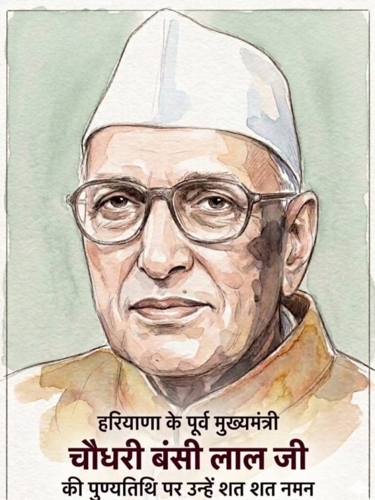 चै. बंसीलाल की 20वीं पुण्यतिथि पर पुष्पांजलि अर्पित करते हुए चै. बंसीलाल को बताया हरियाणा का निर्माण