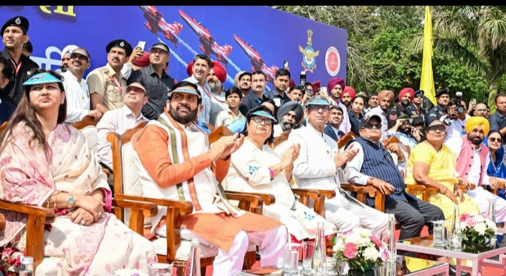 आज चंडीगढ़ की सुखना झील पर आयोजित ‘सूर्यकिरण एयर शो’ का हिस्सा बनकर गौरव की अनुभूति हुई। भारतीय वायु सेना के वीर पायलटों ने अपने अद्भुत कौशल और साहस का प्रदर्शन करते हुए आसमान में रोमांचक करतब दिखाए। उनकी गरजती उड़ान और निर्भीक प्रदर्शन ने हर भारतीय के हृदय में गर्व और उत्साह का संचार किया। हमारे वीर जवान न केवल अपने कौशल में उत्कृष्ट हैं, बल्कि देश की रक्षा और सेवा के प्रति उनका समर्पण भी अद्वितीय है। उनका साहस, अनुशासन और अदम्य जज्बा हम सभी के लिए प्रेरणा का स्रोत है। मैं भारतीय वायु सेना के सभी वीर पायलटों और जवानों को हृदय से नमन करता हूँ।