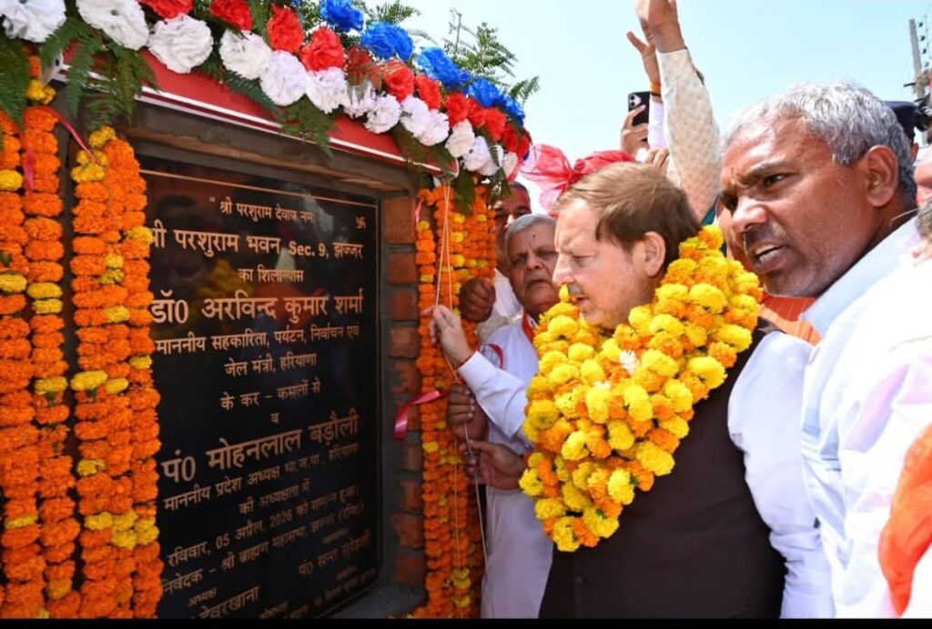 कैबिनेट मंत्री डॉ अरविंद शर्मा ने झज्जर सेक्टर-9 में भगवान परशुराम भवन का किया शिलान्यास