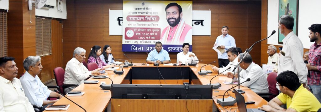 झज्जर, 06 अप्रैल, अभीतक: जिला मुख्यालय स्थित लघु सचिवालय सभागार में सोमवार को जिला स्तरीय समाधान शिविर का आयोजन किया गया, जिसमें डीसी स्वप्निल रविन्द्र पाटिल ने आमजन की समस्याएं सुनते हुए शीघ्र समाधान के निर्देश दिए। समाधान शिविर में आधा दर्जन से ज्यादा शिकायतें प्राप्त हुई। इस अवसर पर डीसी स्वप्निल रविन्द्र पाटिल ने संबंधित विभागों के अधिकारियों को निर्देश देते हुए कहा कि समाधान शिविर में प्राप्त प्रत्येक शिकायत का समयबद्ध एवं संतोषजनक निपटारा सुनिश्चित किया जाए। उन्होंने कहा कि इन शिविरों का मुख्य उद्देश्य नागरिकों की समस्याओं का एक ही स्थान पर त्वरित समाधान करना है, ताकि लोगों को विभिन्न कार्यालयों के चक्कर न लगाने पड़ें। उन्होंने बताया कि मुख्यमंत्री श्री नायब सिंह सैनी के निर्देशानुसार जिला प्रशासन द्वारा प्रत्येक सोमवार व गुरुवार को प्रातः 10 से 12 बजे तक जिला मुख्यालय सहित बहादुरगढ़, बेरी व बादली उपमंडल मुख्यालयों पर नियमित रूप से समाधान शिविर आयोजित किए जा रहे हैं। इन शिविरों के माध्यम से आमजन की समस्याओं का समाधान उनके निकटतम स्तर पर सुनिश्चित किया जा रहा है। डीसी ने अधिकारियों को यह भी निर्देश दिए कि शिकायतों के निपटारे के दौरान संबंधित नागरिक से संवाद स्थापित करें, ताकि समाधान की गुणवत्ता और संतुष्टि सुनिश्चित हो सके। इस अवसर पर एडीसी जगनिवास, एसडीएम झज्जर रवि मीणा, सीटीएम ऋतु बंसीवाल, एसीपी दिनेश कुमार, डीडीपीओ निशा तंवर, एक्सईन पीडब्ल्यूडी सुमित कुमार सहित विभिन्न विभागों के अधिकारी उपस्थित रहे।