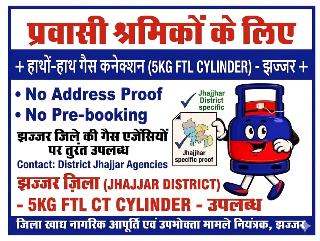 आधार कार्ड से मिनटों में मिलेगा 5 किलो गैस सिलेंडर, झज्जर में जनसुविधा की पहल