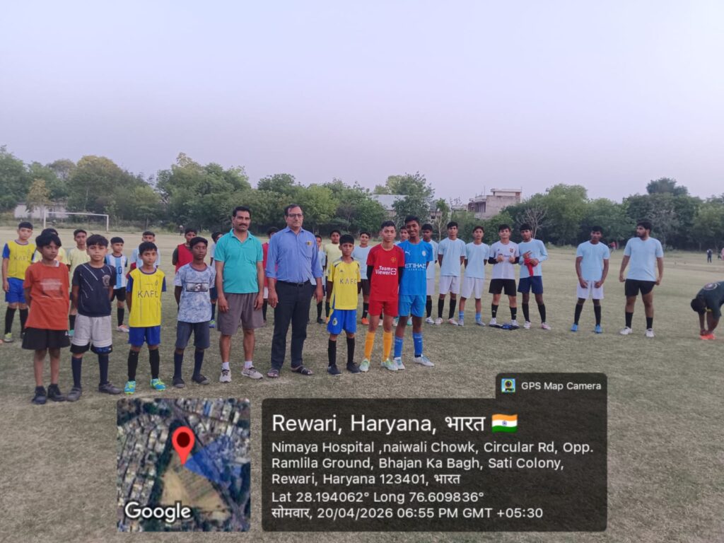 रेवाडी, 22 अप्रैल, अभीतक: राजकीय वरिष्ठ माध्यमिक विद्यालय, रेवाड़ी के खेल मैदान (अग्रसेन चैक) में चल रही फुटबॉल खेल नर्सरी की गतिविधियों का आज वरिष्ठ शिक्षाविद एवं साहित्यकार मनोज कुमार वशिष्ठ ने विधिवत निरीक्षण किया। विद्यालय प्राचार्य विनोद कुमार यादव के कुशल मार्गदर्शन में संचालित इस खेल नर्सरी का उद्देश्य क्षेत्र की खेल प्रतिभाओं को विश्वस्तरीय मंच प्रदान करना है। निरीक्षण के दौरान मनोज वशिष्ठ ने कोच देवेंद्र डीपीई और नवीन जांगड़ा के साथ खिलाड़ियों के प्रशिक्षण सत्र, खेल सामग्री की उपलब्धता और अभ्यास की बारीकियों पर विस्तार से चर्चा की। उन्होंने मैदान पर पसीना बहा रहे नन्हे खिलाड़ियों का उत्साहवर्धन करते हुए उन्हें खेल की बारीकियों के प्रति जागरूक किया।